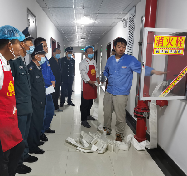 實操演練由安環(huán)部的余鋼同志負(fù)責(zé),余鋼同志首先給大家普及了一些消防基本知識,滅火器的檢查和使用方法,緊接著,開始演示用干粉滅火器進行滅火,現(xiàn)場邀請了不同工種且沒有用過滅火器的人員參加實際操練?,F(xiàn)場鐵桶點燃的火焰,很快就被幾位提著滅火器的同志撲滅了。隨后,全體人員來到了職工公寓,余鋼向大家細致地介紹了推車式滅火器的檢查和使用方法及消火栓的使用方法,全體人員認(rèn)真地聆聽著,對于沒有聽懂的地方,大家也能夠主動進行提問,交流學(xué)習(xí)。最后,大家來到了后廚工作場所,余鋼同志介紹了后廚撲火的滅火毯,一位同志主動請纓,為大家進行了實踐演示。
