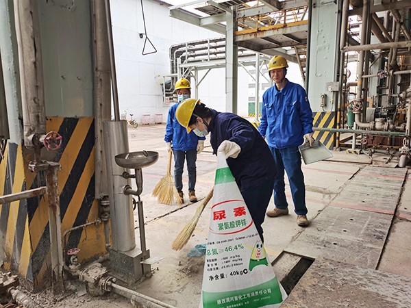 2020年檢修的第七天,天空下起了雨,微風四起,尿素現(xiàn)場依舊一片繁忙,檢修人員頂著斜風細雨,有條不紊地進行著檢修任務,雨水打濕了他們的衣服,臉上已分不清是雨水還是汗水,天氣絲毫沒有影響到正在檢修的他們,一個個埋頭苦干全然不顧自己。