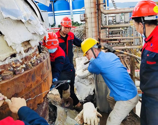 5月14日,雙甲車間二期合成塔觸媒更換工作正式開啟,共產(chǎn)黨員沖鋒在前,和其他參檢人員一道艱苦奮斗,展現(xiàn)雙甲風(fēng)采,積極完成年度檢修各項任務(wù)。