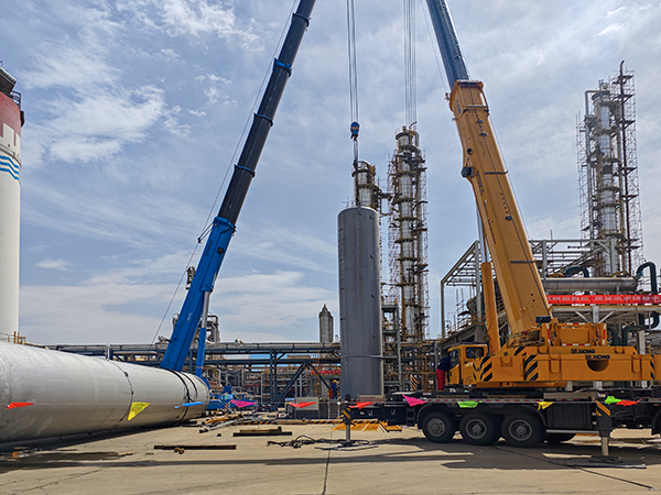 在方案制定階段,工作組全盤考慮工程主要技術(shù)參數(shù)、關(guān)鍵過程優(yōu)化及應(yīng)急處置方案,最終確定采用單吊車提升滑移抬吊方式。同時(shí),針對(duì)降級(jí)后的運(yùn)行管理,提前修訂操作規(guī)程和應(yīng)急預(yù)案,確保風(fēng)險(xiǎn)管控百密而無一疏。